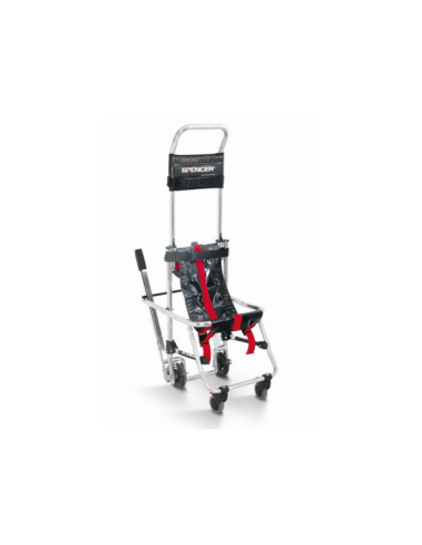 La silla Skid-OK de Spencer está diseñada para facilitar la evacuación rápida y segura de personas en edificios con escaleras o espacios reducidos. Su estructura ligera de aleación de aluminio y su sistema de deslizamiento con patines traseros permiten una bajada controlada por un solo operador, sin necesidad de levantar peso. Cuenta con respaldo reclinable, reposapiés, cinturones de sujeción y ruedas delanteras giratorias que aportan estabilidad y maniobrabilidad en todo tipo de entornos.