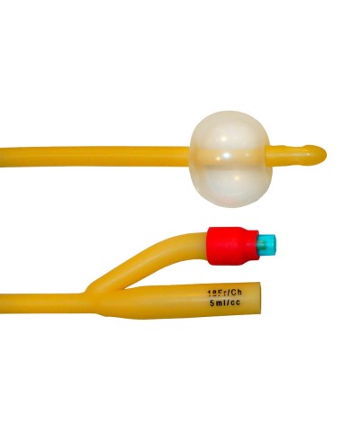 Sonda Uretral tipo Foley 2 vías con balón de látex, punta estándar, para el drenaje y limpieza del sistema urinario del paciente.